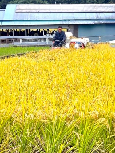 毎年かなちょくで出荷していただいてる中井町の小沢耕一さんの稲刈り『てんこもり』の様子を見てきました。